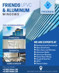 At Friends UPVC & Aluminium Windows, led by CEO M. Usman Arshad, we specialize in transforming ordinary spaces into modern architectural statements. Whether you are upgrading a residential home or designing a commercial high-rise, our team provides top-tier glass and structural solutions in Lahore.
